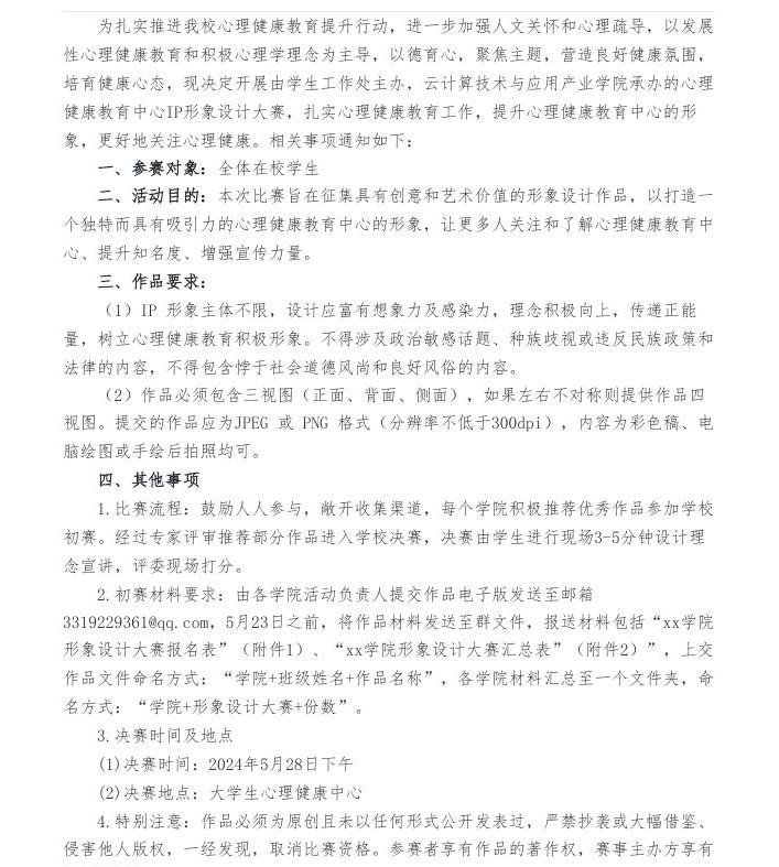 关于举办“大学生心理健康教育中心IP形象设计大赛”通知